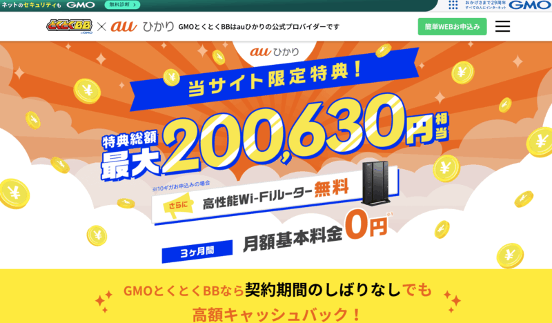 キャッシュバックキャンペーン当サイトのGMOとくとくBBのキャンペーン特典で最大100,000円キャッシュバック