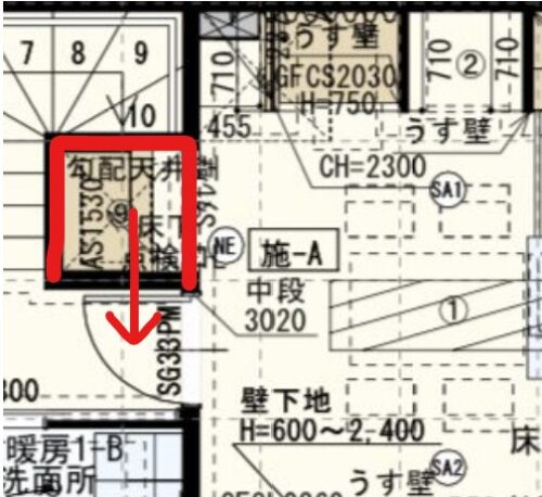 リビングの見える位置に置くのも景観がわるいので、階段下収納にトイレを配置することにしました。